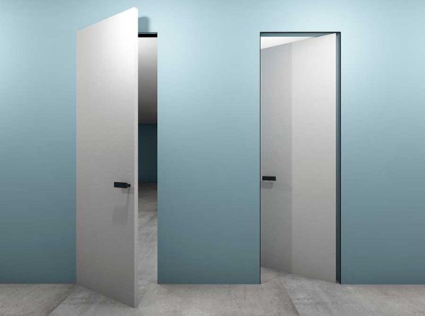 Главный принцип скрытой двери отсутствие заметных наличников и традиционных рамок. Короб монтируется заподлицо со стеной, после чего поверхность окрашивается, облицовывается панелями или штукатурится, повторяя отделку помещения. Полотно также может быть окрашено под стены, облицовано шпоном, покрыто декоративными панелями или выполнено в виде зеркала. В результате дверь становится частью стены, а помещение выглядит более просторным и лаконичным.