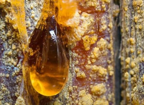 - Нужно собрать свежую живицу с надреза на сосне. Разрешается использовать прозрачную смолу без коры и мусора.