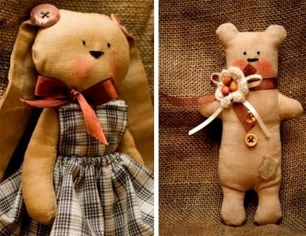 Трикотажные ткани считаются универсальными, из них можно шить разнообразные предметы (подушечки, куклы, звери, панно, аппликации). Хлопчатобумажные: ситец, бязь, сатин, флис, фланель идеальны для детских предметов, так как они отличаются экологичностью, гигиеничностью, гипоаллергенностью и приятными яркими расцветками. Шелковые ткани преимущественно используют для отделки, обработки, аппликаций. Ворсовые виды тканей – для шитья мягких игрушек-зверюшек (медведей, зайчат, белочек, собачек, кошечек и др.). Валяные виды (фетр) очень удобны в работе, так как их края не обсыпаются и не требуют дополнительной обметки, а это, в свою очередь, расширяет возможности и облегчает шитье.